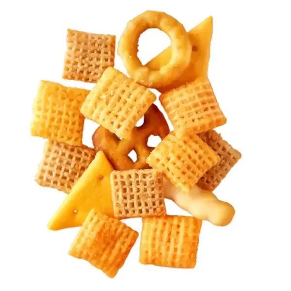 Jede Packung enthält knusprige Corn Chex, Runde Brezeln, Käse Cracker, Weizen Chex, Eckige Brezeln und Squiggle Brotstangen – keine zwei Handvoll sind gleich.