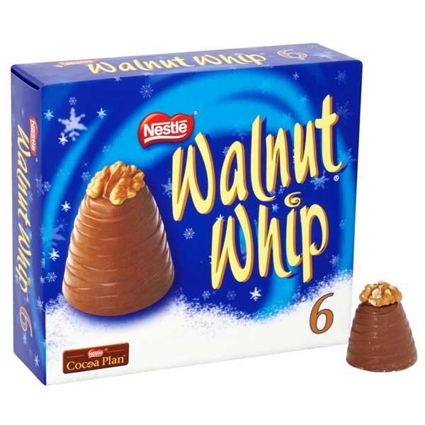 En pakke med seks lækre og cremede chokolade-hvirvler, der har et fyld med fondant-creme og toppet af med en valnød. Walnut Chips er lækker hvirvelformet mælkechokolade med creme af vaniljefondant i midten og afrundet med en valnød øverst oppe.